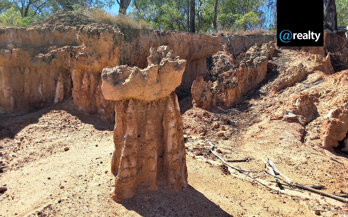 The land has many unique land scape features with various kinds of soli, Red soil in the top right corner, moving yellow and white sandy loam, the grass is native and suitable for cattle and horses. Seasonal creeks weave around the property and offer great swimming in the season. The dam is all year around for the cattle and the bore water is clean and good for drinking.