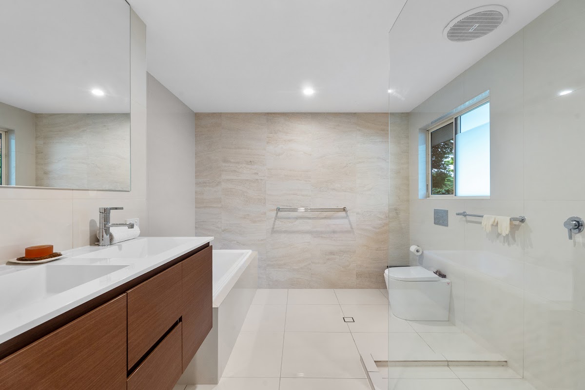 – Ensuite with double vanity, floor to ceiling tiles and large shower and bath.