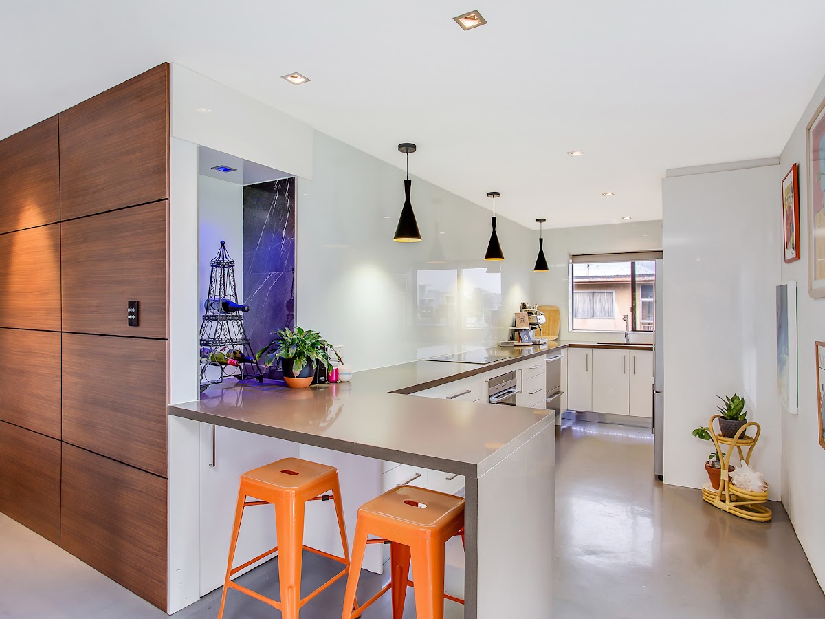 Inside you will find a kitchen large enough for a house with Ceasar stone tops, Two Pac doors and double dishwasher drawers.
