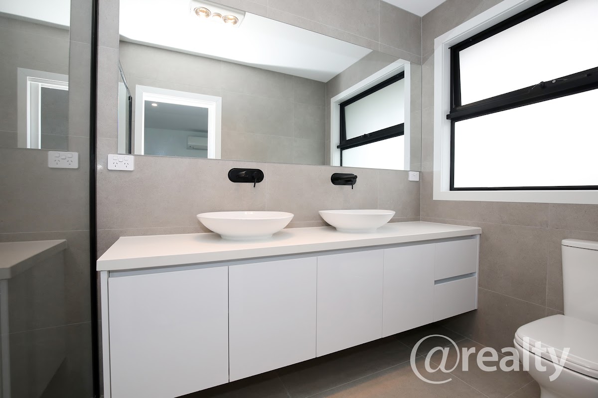 This home’s opulent interior boasts a further three bedrooms upstairs, the main master bedroom includes a walk-in-robe, large ensuite with double shower and vanity, floor-to-ceiling tiles and further double bedrooms with built in robes sharing the main family bathroom that offers a freestanding bath. Other features include a remote double garage with internal access, large separate laundry, split system heating/cooling, video intercom, timber floors to living areas & carpet to the bedrooms.