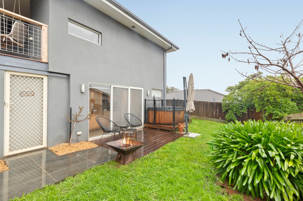 Upon entering you will be immediately impressed by the light-filled living and dining domain complete with gas log fireplace and split system heating and cooling for comfort. Gourmets will relish their time in the sleek modern kitchen flaunting 2 ovens, one ‘self-cleaning’ pyrolytic, huge stone island bench, tiled splashbacks, walk-in pantry, 900mm cooktop and integrated dishwasher, with beautiful views across the neighbouring mountains adding to the allure. Sliding doors open up to the serene covered alfresco, where you can enjoy the elevated outlook as you relax or entertain in comfort. Three bedrooms with built-in robes share the sparkling family bathroom, with a renovated laundry resting alongside, while downstairs, the main bedroom includes walk-in robe, luxe ensuite and private deck with spa, with a fifth bedroom and study rounding out the extensive list of inclusions.
