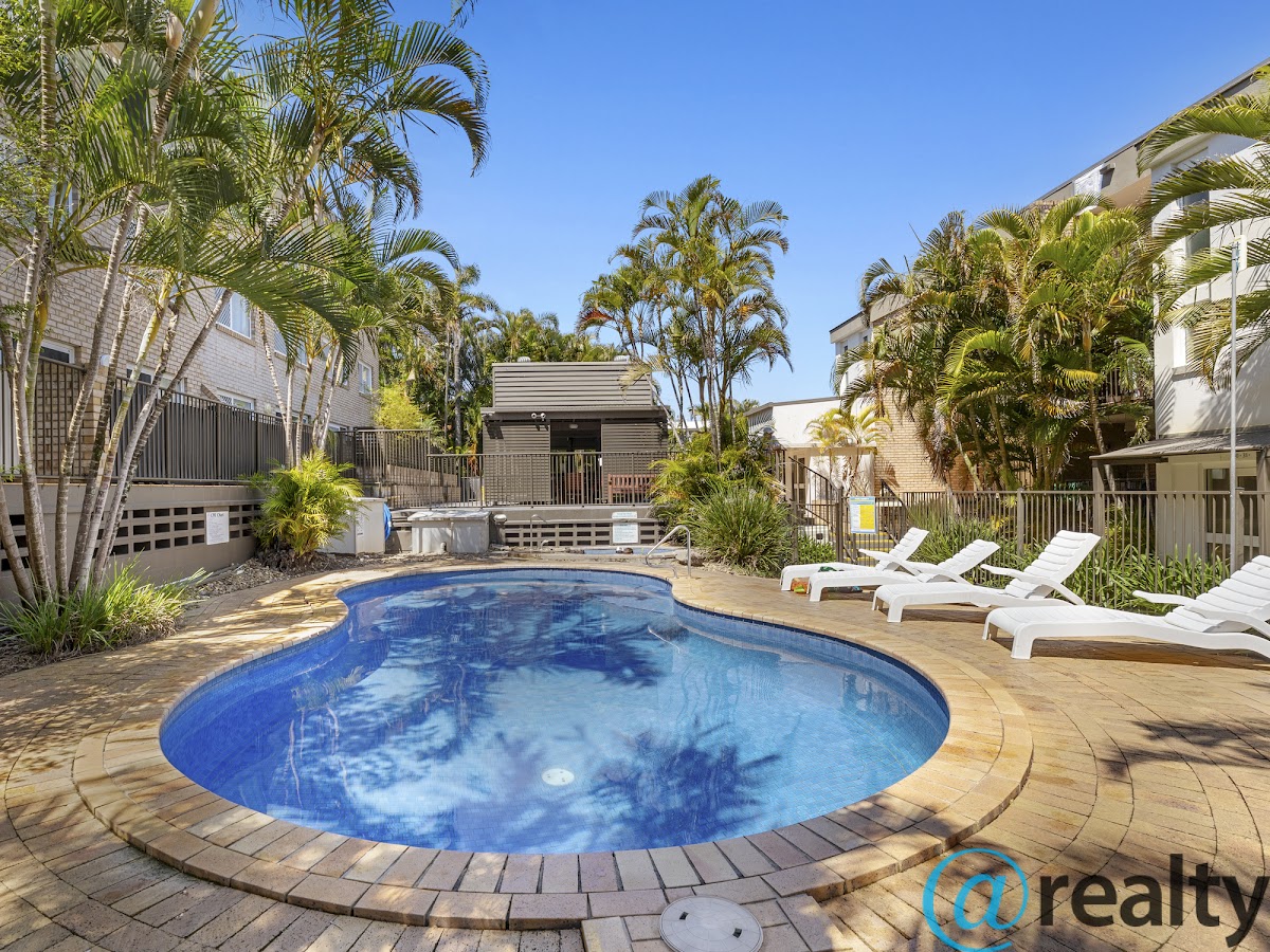 This quirky 2 bedroom + study or office + 1 bathroom apartment in an established building on ground floor with beachside front veranda and rear outdoor veranda for BBQ and alfresco living . The rear access provides direct walkway to the pool , spa & undercover BBQ entertainment area.