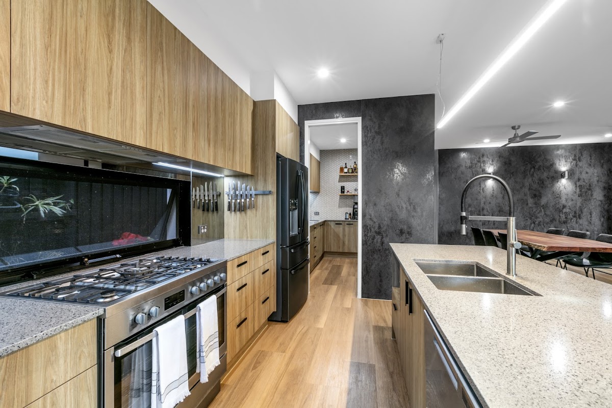 Every aspect of the home’s cabinetry has been thoughtfully considered, with handcrafted Camphor Laurel timber cabinetry in the bathrooms providing not just functionality but a bespoke, artisanal touch. The customised cabinetry within the kitchen and butler’s pantry is highly versatile and functionally designed to seamlessly accommodate all your culinary needs, providing ample storage while maintaining an elegant aesthetic.