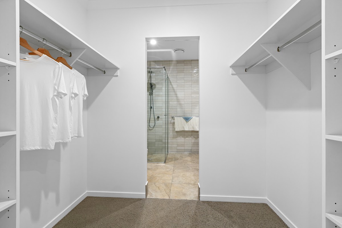 The charming Hamptons-inspired façade sets the tone—classic, elegant, and inviting. Inside, the home continues to impress with 2.7-metre high ceilings, light-filled open-plan living, and a seamless flow from indoors to out. Timber panel feature walls and custom cabinetry add warmth and texture, while stone benchtops and floor-to-ceiling tiled bathrooms elevate the overall sense of quality and sophistication.