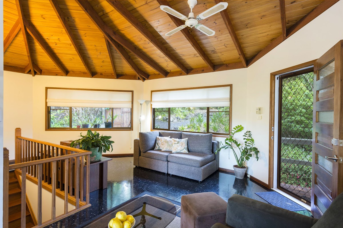 Entry level has an open plan spacious light filled living with ceiling fans reverse cycle air conditioning lounge and dining, kitchen area with breakfast bench and pantry complete with timber high raked ceilings.