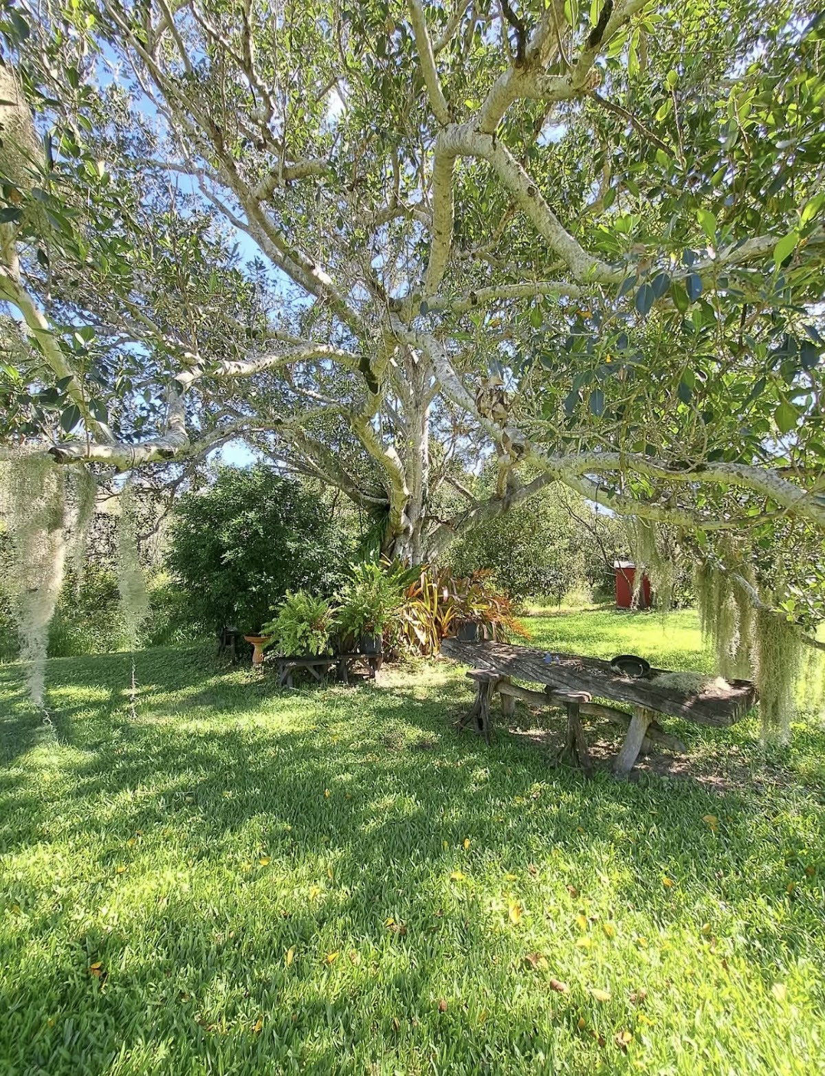 ⁃ Fenced paddocks currently running sheep under the mango trees