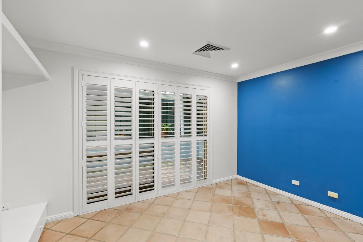 ·Plantation shutters, Integrated fireplace in formal living,