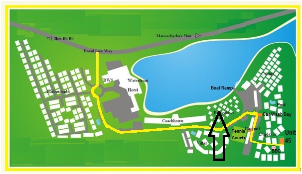 The resort is located within 6 minutes drive to Sunshine Plaza, 7 minutes to Mudjimba or Maroochydore patrolled surf beaches, 10 minutes to Nambour and it is right in the centre of the Sunshine Coast, between Noosa and Caloundra. Erbacher’s Fruit and Vegie shop “where the locals go”, and the Fisherman’s Road Markets on a Sunday, are both only about 500 meters up the road. It is only a 8 minute drive to the Sunshine Coast Airport and only 1 hour to Brisbane.