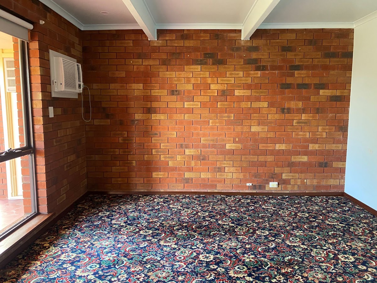• Spacious open-plan living and dining room with a pot belly fireplace and split system air-conditioning.