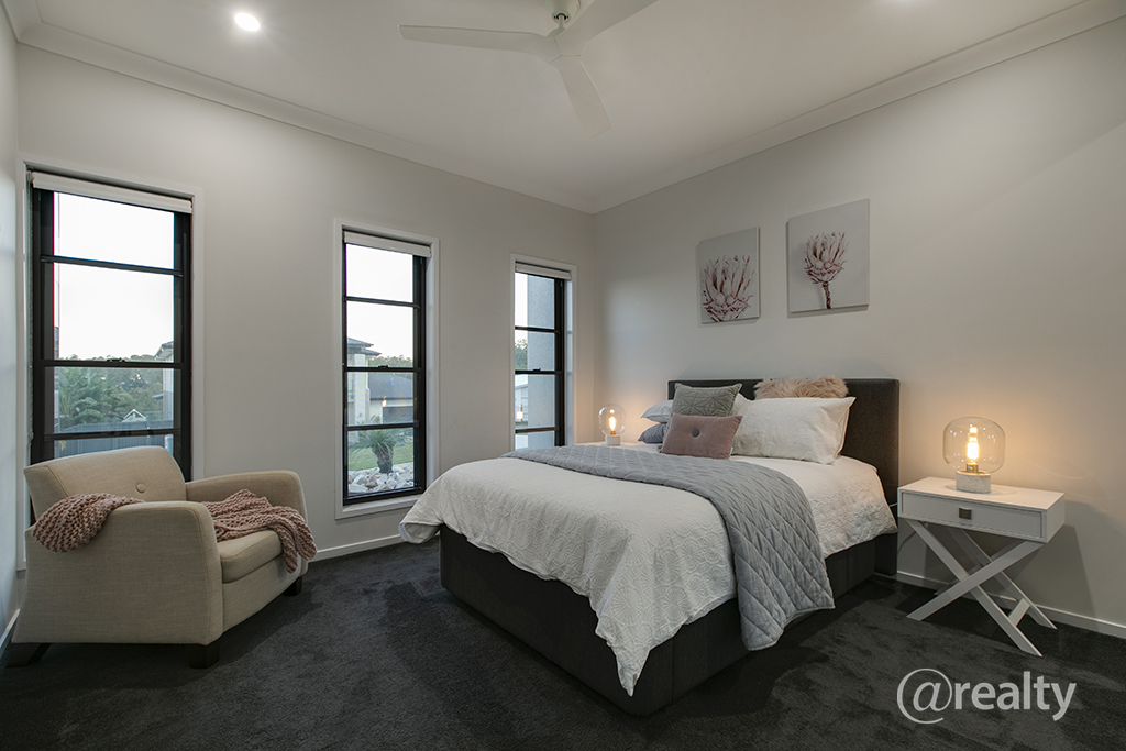 Back inside you will appreciate the Master bedroom is set privately at the rear of the home, offering an oversized bedroom, spacious walk in robe and stunning ensuite with twin vanities and a double shower. The remaining three bedrooms being in a wing of their own with a separate children’s retreat, complete with a tv point, all offer large built in robes and ceiling fans.