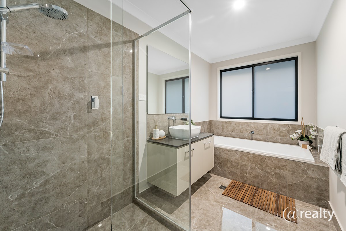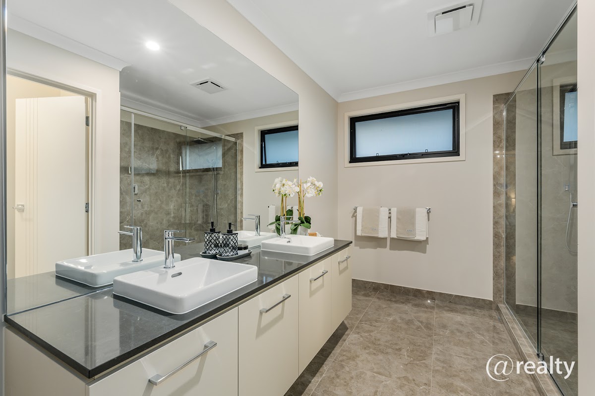 * Executive master suite complete with a large walk in robe & a stylish ensuite complete with his & hers stone bench vanities and a modern large shower equipped with a rainwater showerhead