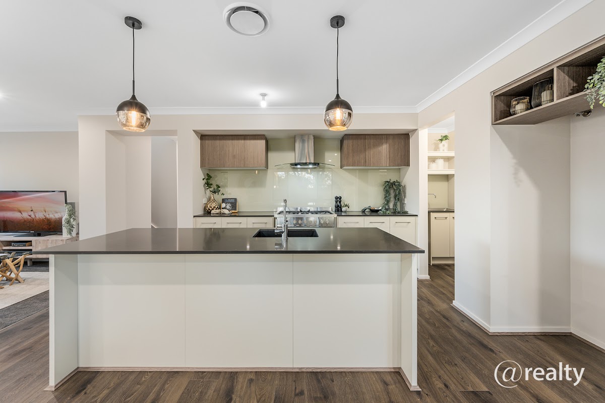 * Gorgeous gourmet kitchen with an endless flow of stone benchtops, a fantastic selection of soft close drawers & cupboards with soft close doors, dazzling feature pendant lighting, quality appliances including a 900mm freestanding oven with a 5 burner gas cooktop & dishwasher, a large island workbench & a perfectly finished with a sparkling butler’s pantry…all awaiting any budding MasterChef!
