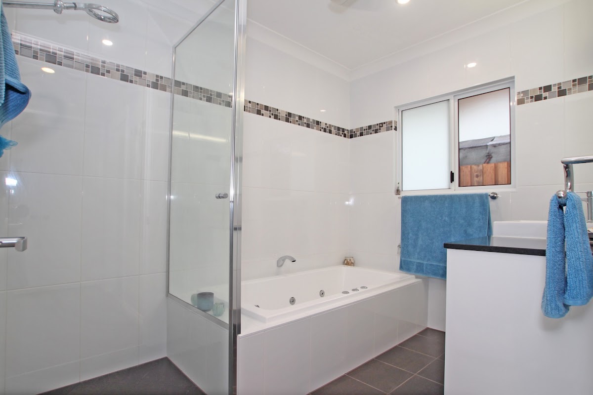 Fully fenced 700m2 landscaped block with plenty of room for the kids to play. High clearance double car garage perfect for storing boats.