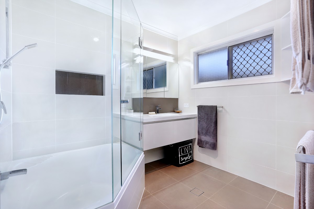 Upstairs consists of a modern kitchen with caesar stone bench top and stainless appliances. Air conditioned open plan living and dining, 3 bedrooms (1 with air conditioning), generous bathroom with plumbing for a combined laundry