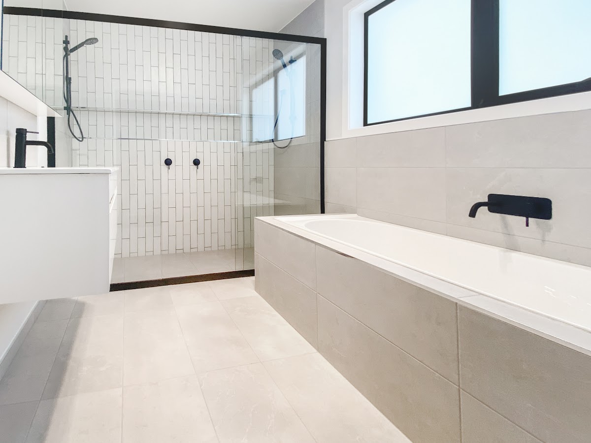 your standard new home offering with stone benchtops, automatic blinds, generous level access premium tiled showers