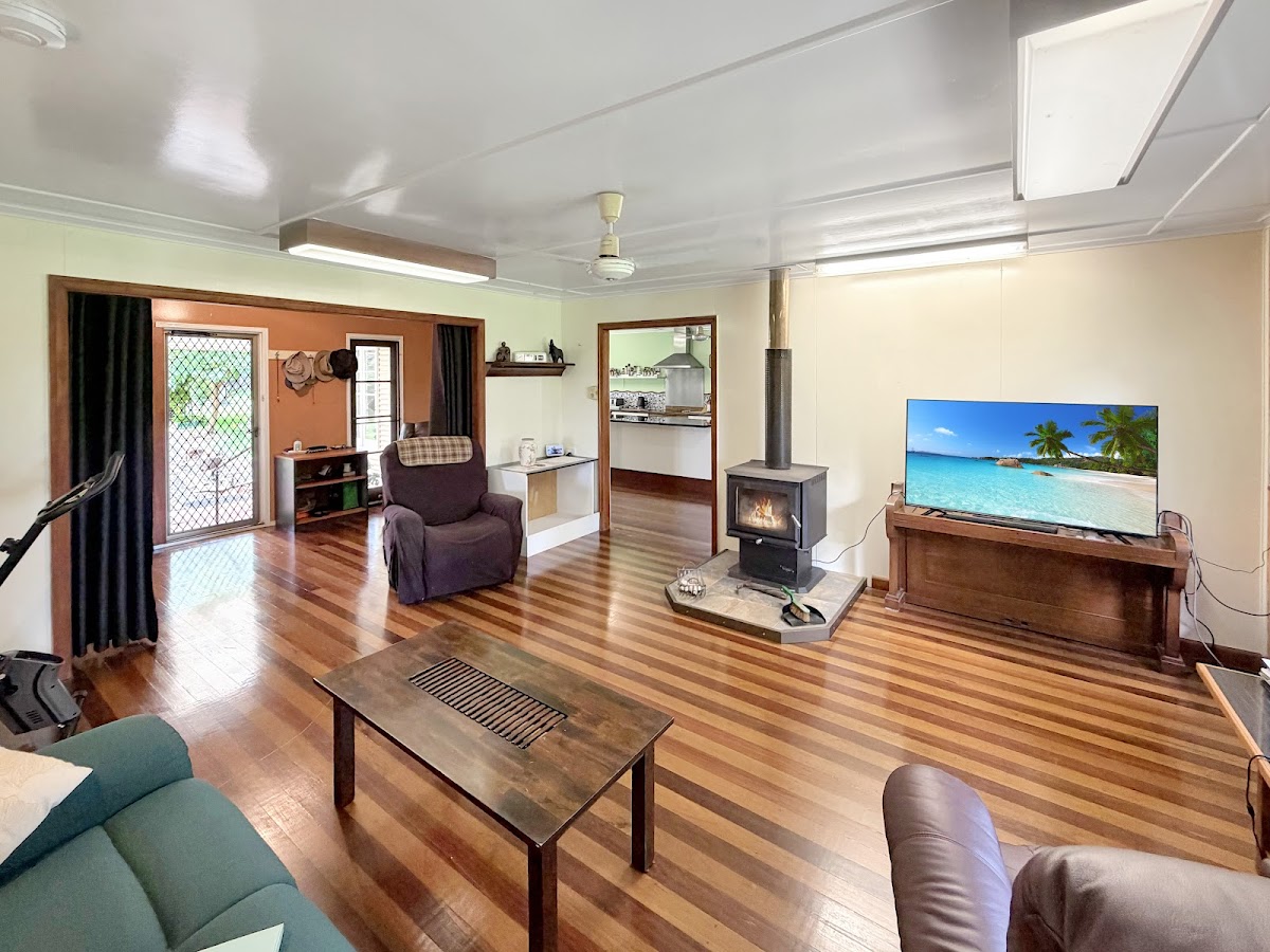 Climate control is perfectly managed with reverse cycle air conditioning for year-round comfort and a cosy wood heater for those crisp country evenings. The thoughtful design extends outdoors with a welcoming porch and dedicated entertainment area overlooking the dam, ideal for enjoying the tranquil rural setting and hill views.