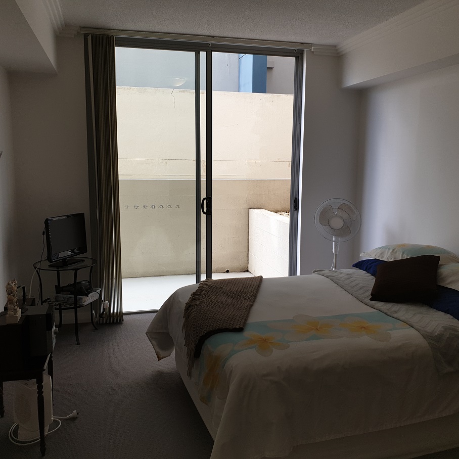 Affording lots of light from the sliding glass doorways in living and bedroom is a real bonus. The bedroom is quite spacious and is complete with a decent walk in robe, and a compact area for a desk. There is also room to accommodate a second television if required. Laundering is easy with a separate room for this household task.