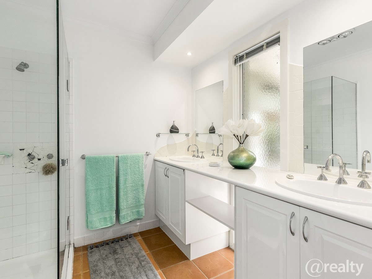 • Light-filled master comprising a walk-in robe, full ensuite with frameless shower and twin vanity, as well as access to the rear deck