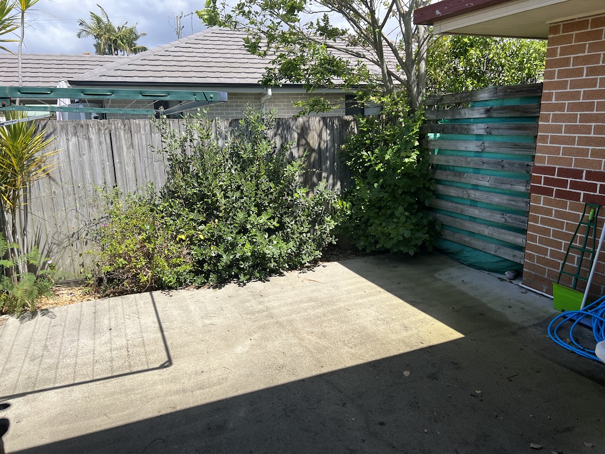 8. From the bedroom t a sliding door leads out to a spacious courtyard which is part of the unit and is fenced. It has a fold-up washing line