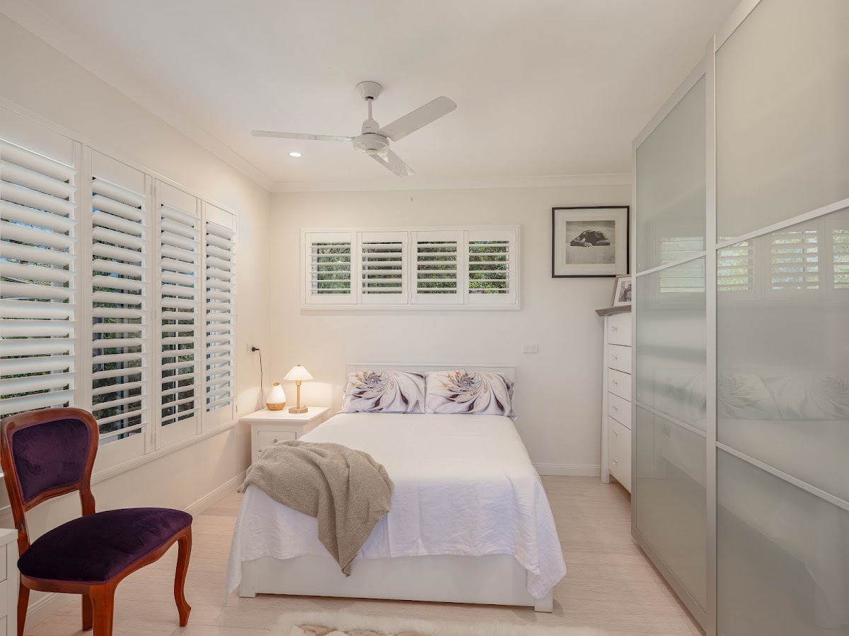 Step inside and you’ll immediately appreciate the sense of space and style. High 9-foot ceilings, plantation shutters throughout, and abundant natural light create an airy, inviting atmosphere. Every detail has been considered, combining practicality with understated elegance.