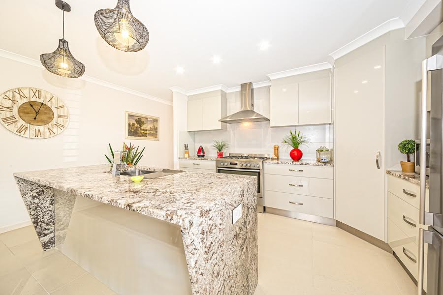The home has four good sized bedrooms, two bathrooms, double garage, open plan living/dining/kitchen and separate lounge room or children’s playroom. The kitchen has been equipped with the chef in mind and boasts a 90cm wide oven, five gas burner stove, loads of cupboards, soft closing drawers and beautiful Brazilian granite bench tops. There is no lack of storage throughout the property with inbuilt cupboards also installed in the garage.
