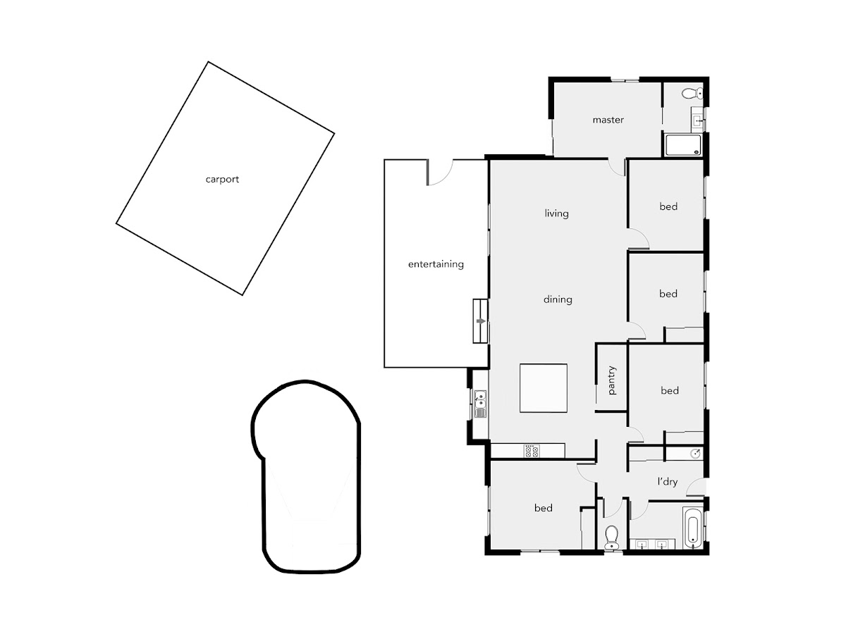 The huge covered outdoor entertaining area allows plenty of room for entertaining whilst enjoying a peaceful and private aspect overlooking the pool. With so many different sitting areas provided around this home creates a lovely sense of division and privacy yet the home still feels very warm and connected.