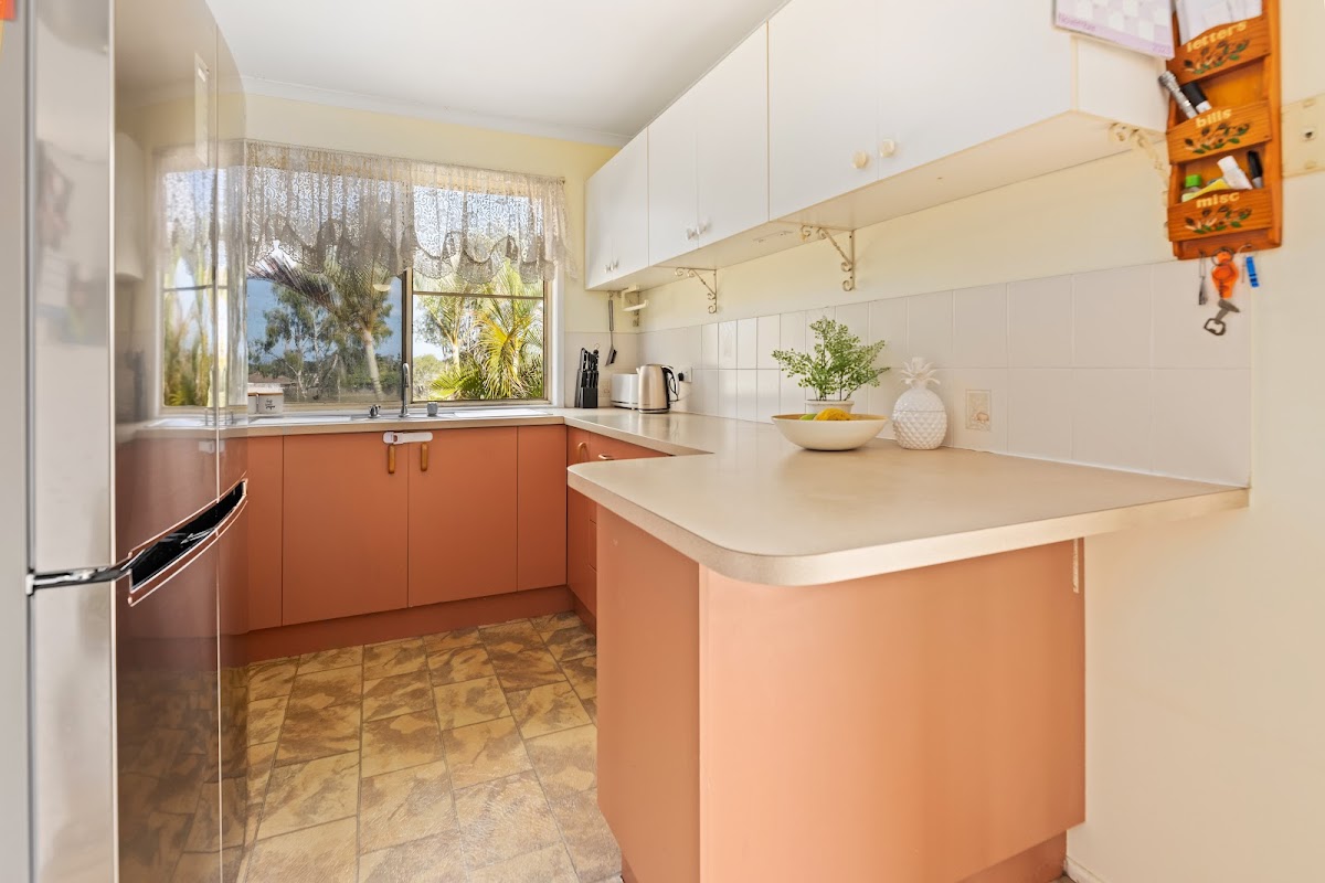 – Kitchen with good bench and cupboard space, electric cooking and room for a large fridge