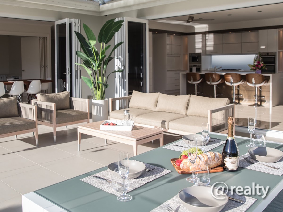 • Slide back the full wall, 6 stack bi-fold doors and the outside becomes an extension of the home. Where you can entertain in style in the poolside-entertaining zone, featuring high vaulted ceilings, extensive use of louvers to catch the breezes and the integrated outdoor kitchen.
