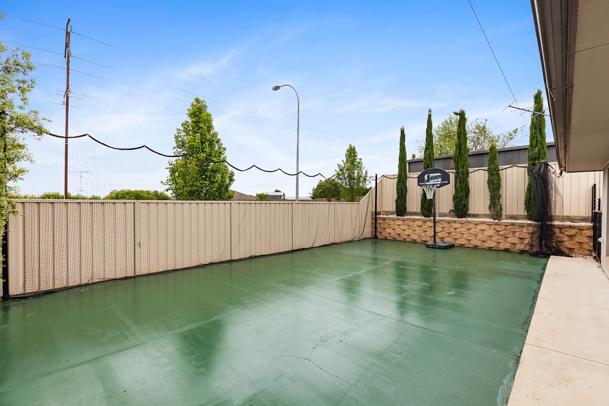SLIDING DOORS FROM THE FAMILY ROOM LEADS TO A LARGE DECKING PATIO AREA GREAT FOR ENTERTAINING FAMILY AND FRIENDS. PRIVATE YARD IDEAL FOR KIDS AND PETS, WITH BASKETBALL ¼ COURT IDEAL FOR ANY SPORTS.