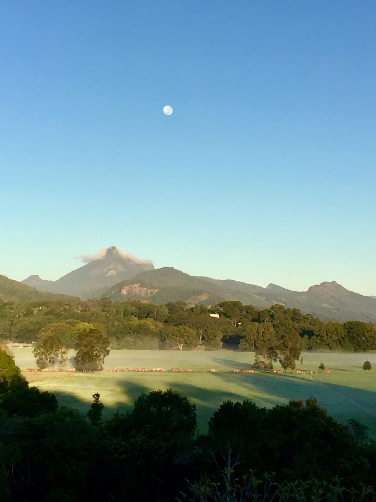 Sometimes the photos just can’t do the property justice. This is one such example. The feeling of peace and tranquility you get the moment you walk into this understatement in elegance and style flows over you the moment you arrive. Sitting quietly at the end of the street with only one near neighbour you will feel like you are at home in the country with sweeping green valley views to the ever changing palette of Mount Warning and the surrounding ranges which seem to imbue a true sense of belonging in this very special place in the Caldera of the Northern Rivers. You will be mesmerised every day as you soak in the rays of light from your private back deck overlooking a sumptuous, lovingly thought out tiered garden where the chooks roam freely around your thriving veggie gardens.