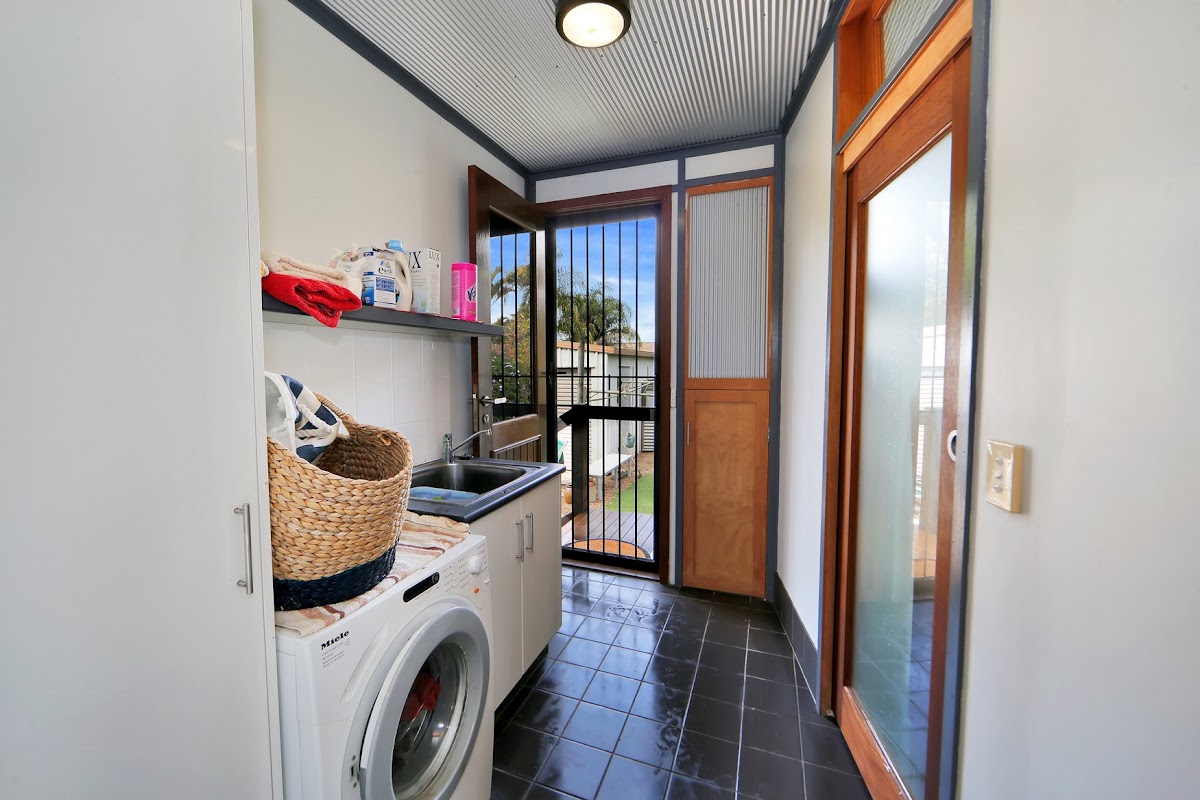 Upstairs Features: Spacious open plan living area with hard board flooring, high raked ceilings and bi fold doors opening onto generous sized verandah to catch the coastal breezes. The kitchen is complete with new 3 burner gas stove, bench top electric oven, miele dishwasher and large pantry. There is an office nook with NBN, master bedroom boasting ocean views, walk in robe, ensuite and laundry shoot.