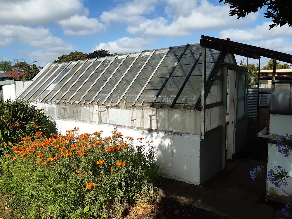 * GLASSHOUSE, STORAGE SHED, FRUIT TREES, BORE & TANK, WATERING SYSTEM