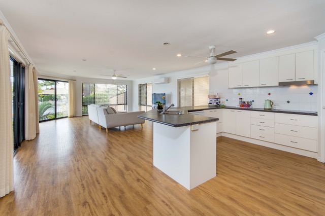If you are looking for a recently renovated low set home on the canal with secure space to store a caravan and all the toys, then this home is for you. Built on an 837 sqm block with low maintenance gardens, this home is situated in a quiet South facing cul-de-sac position with private gardens. The local shopping centre, Banksia Beach Primary School, Bowls Club, Pacific Harbour Golf & Country Club and public transport are located nearby.