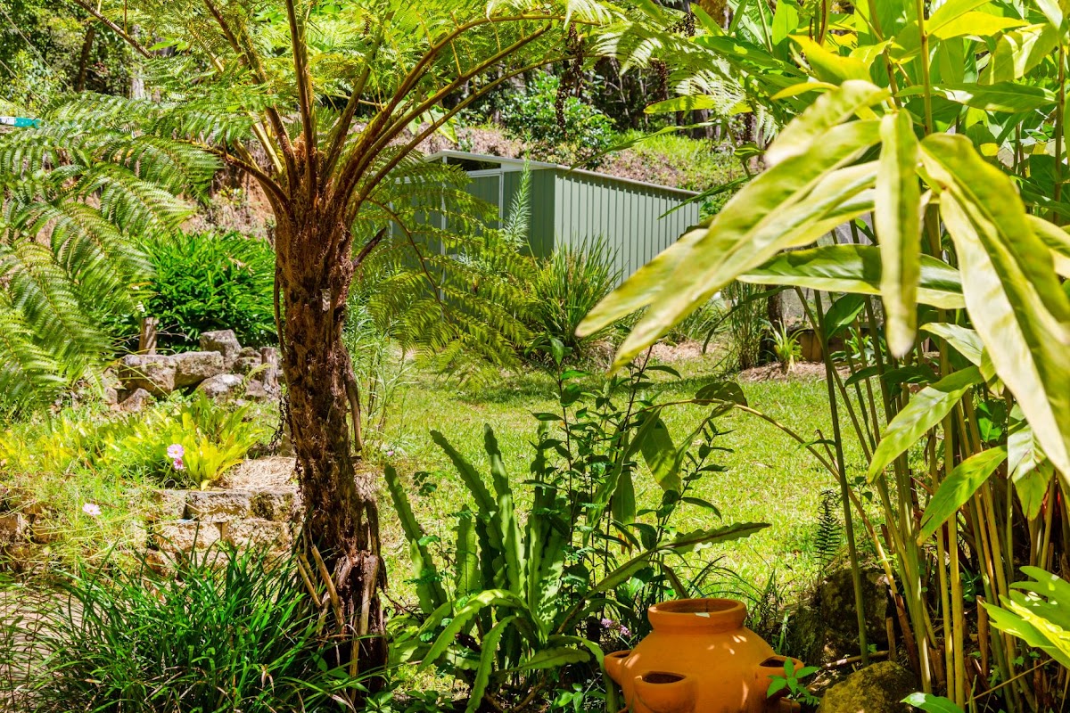 Enjoy this 3 acre palm-fringed sanctuary in a handy position just minutes to the much sought after village of Uki. The 2 bed home is set back on the level useable part of the block giving total privacy from the cul-de-sac road and is surrounded by native forest where local wildlife abound. There is loads of room around the home for future expansion and plenty of land for veggie gardens and chook run.