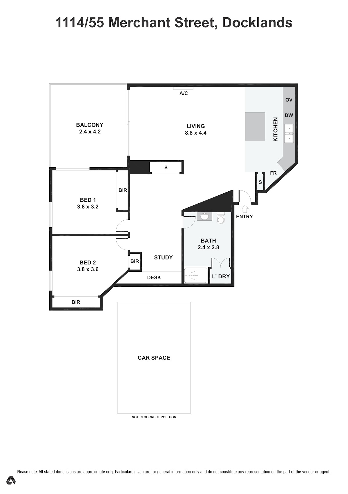 Positioned in the heart of Docklands, Apartment 1114 at 55 Merchant Street presents an outstanding opportunity to secure a modern, light-filled residence ideal for both owner-occupiers and investors seeking strong rental returns. This beautifully designed two-bedroom, one-bathroom apartment includes a dedicated study nook, secure car parking, and a private balcony, offering a perfect balance of comfort, style, and lifestyle convenience.