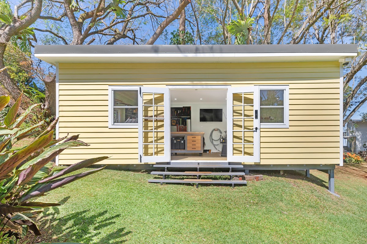 * Separate studio/workshop fully lined, floating floors, extensive lighting, and air conditioned, perfect for an artists studio, yoga room