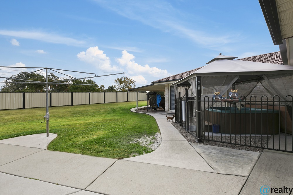 This home was truly designed with family in mind boasting over 220m2 of internal living as well as a massive outdoor area overlooking pool and HEAPS of shed space for the toys! Not only is the home pretty its also practical with each of the 5 bedrooms having having built ins and ceiling fans as well as containing air con in 3 of them. The bathrooms have also been thoughtfully designed with loads of room and large corner baths in each the en suite and main!