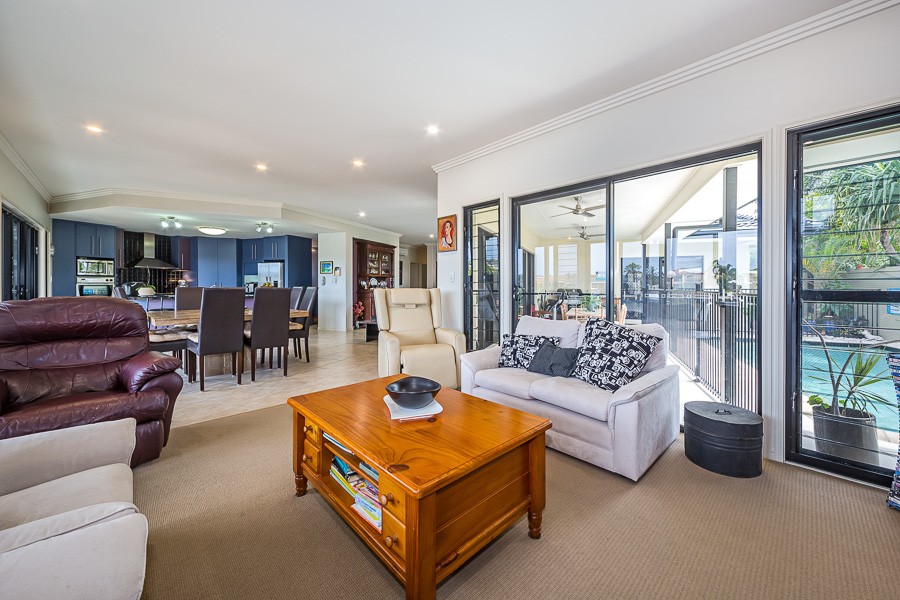 The living areas in this beautiful home overlook the outdoor living area with its secluded swimming pool, allowing for privacy and the gorgeous canal views. There are two bedrooms with en-suite, one being the master and the other a guest bedroom for visitors or perhaps extended family. There is no lack of storage space in this great home, with the laundry being equipped with copious cupboards which could also be used as a butler’s pantry. Everything about this home exudes quality and the features are too many to mention. Look at some of these features: