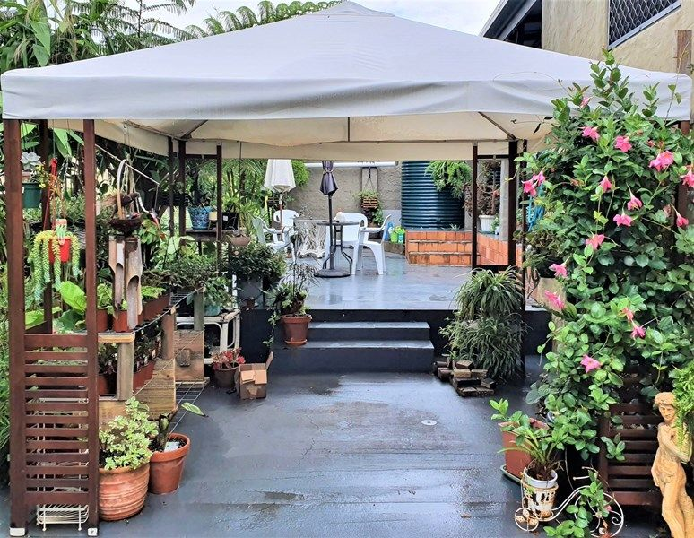 Tandem garage …outdoor entertaining area with gazebo , garden shed and fully established gardens..