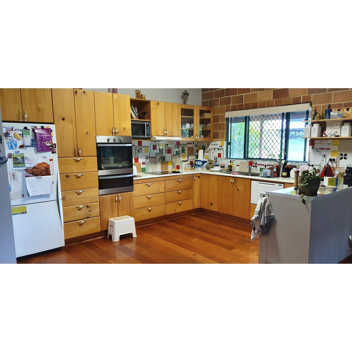 Spacious country style timber kitchen complete with dishwasher and plenty of storage..