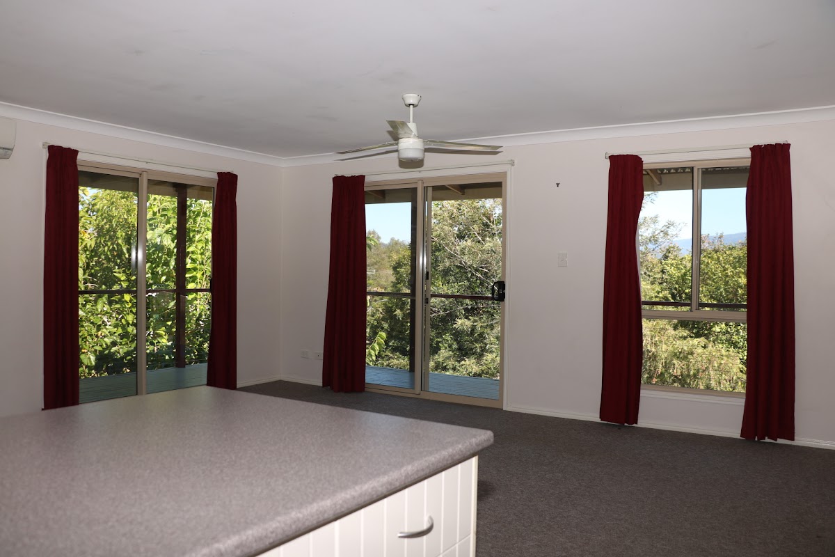 A low maintenance home which has carpeted floors throughout, all 3 bedrooms have built ins, ceiling fans and a large Air Conditioning unit in the open plan living area. Covered decks hug 50% of the house, capturing views to the north including the nightcap ranges. An enormous Mulberry tree sits in the yard with a few other native shrub trees to maximise privacy.