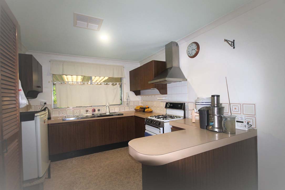 • Kitchen with Gas cooking, rangehood, breakfast bar & built in pantry