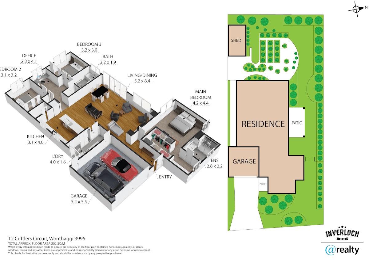 Exit the kitchen-dining area through the double-glazed sliding doors to unveil a fantastic private enclosed Al-fresco dining and entertaining space, ideal for hosting guests. At the rear of the property, you will also find bountiful produce gardens, fruit trees, and a spacious roller-door workshop/shed.