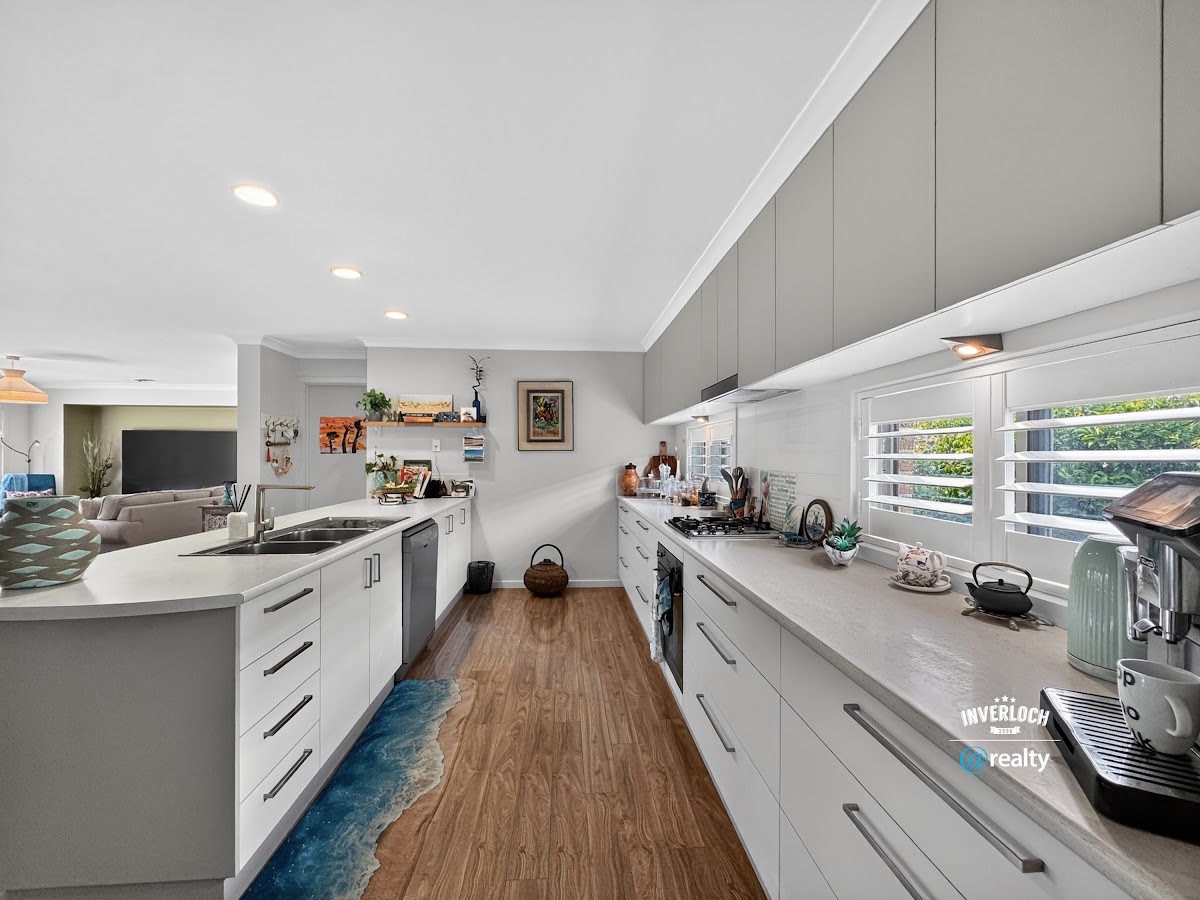 Exit the kitchen-dining area through the double-glazed sliding doors to unveil a fantastic private enclosed Al-fresco dining and entertaining space, ideal for hosting guests. At the rear of the property, you will also find bountiful produce gardens, fruit trees, and a spacious roller-door workshop/shed.