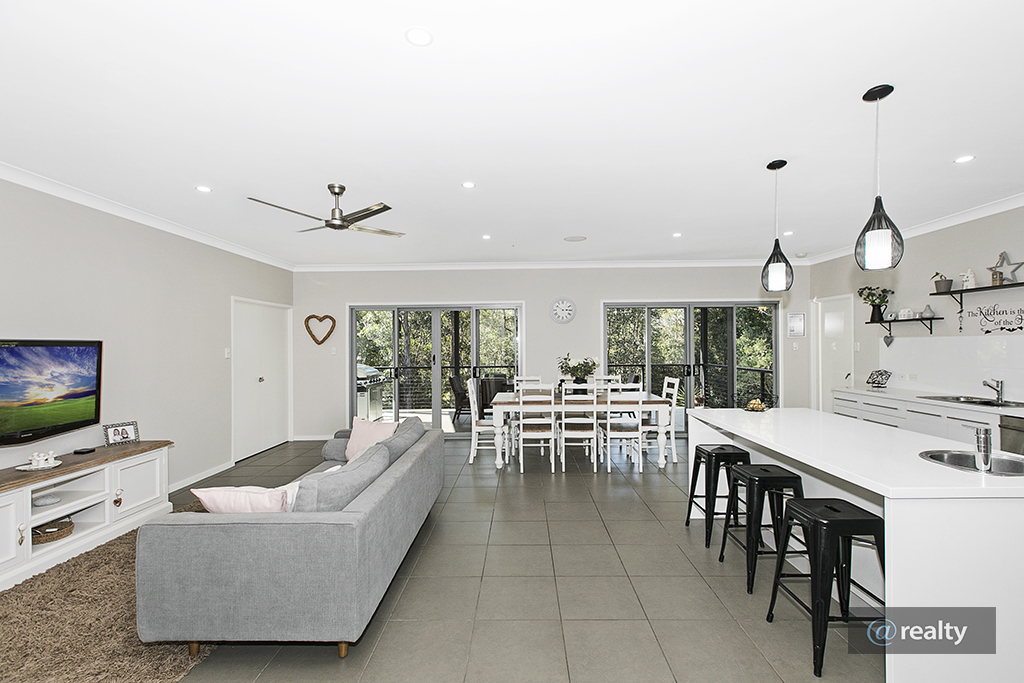 The social hub of the home has lots to offer. A generous galley kitchen offering stone bench tops, induction cooktop and stainless steel appliances which will have the chef in the family cooking up a storm in air-conditioned comfort. There is plenty of room to come together around the island bench and chat while dinner is cooking. The expansive open plan living space then flows seamlessly out to the alfresco entertaining deck allowing you to take advantage of those gorgeous breezes whilst enjoying the uninterrupted view, making it the perfect spot to entertain friends and family. No matter what time of the day it is you can relax in the peace and serenity of nature whilst enjoying that morning coffee or afternoon beer and champers.