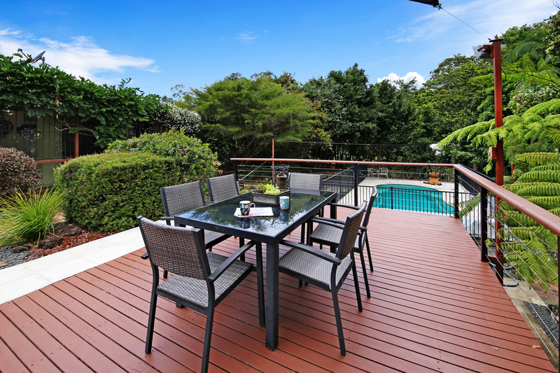 Every bedroom is spacious with robes and fans but the Master Suite is enormous with a very large walk in robe , a timeless ensuite featuring his and hers sinks , seperate loo and stunning views out to the pool and the bush back drop.
