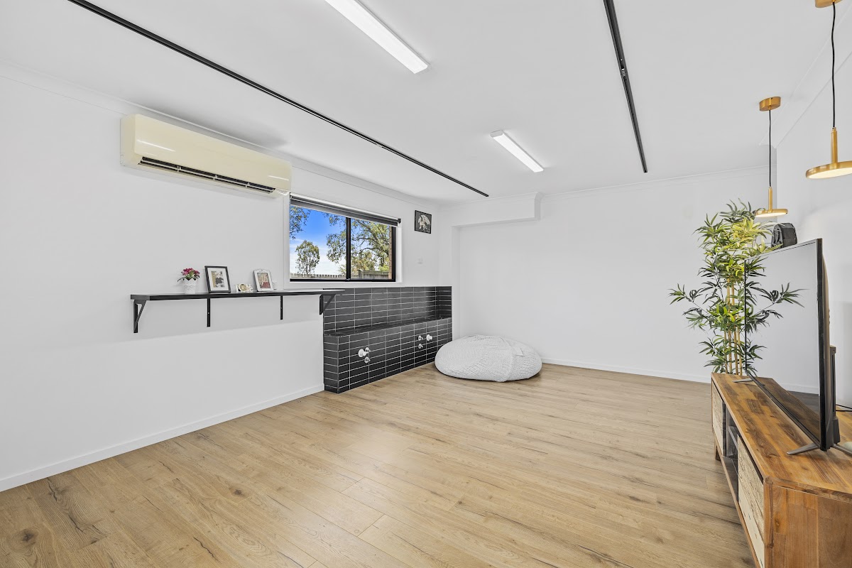 Climate control is effortless with reverse cycle air conditioning ensuring year-round comfort, while eco-conscious features include solar panels and a water tank to reduce environmental impact and utility costs. The property also features gas hot water and broadband internet availability, catering to all modern lifestyle needs.