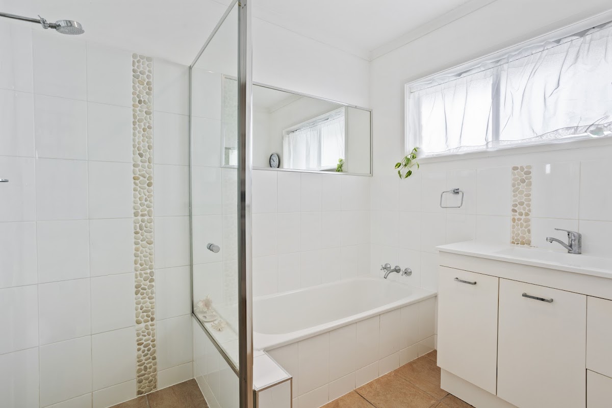 The other two bedrooms, with built-in wardrobes and large windows to let in the sunshine. The main bathroom is modern with shower, bath tub, vanity and separate toilet. A separate laundry with storage.
