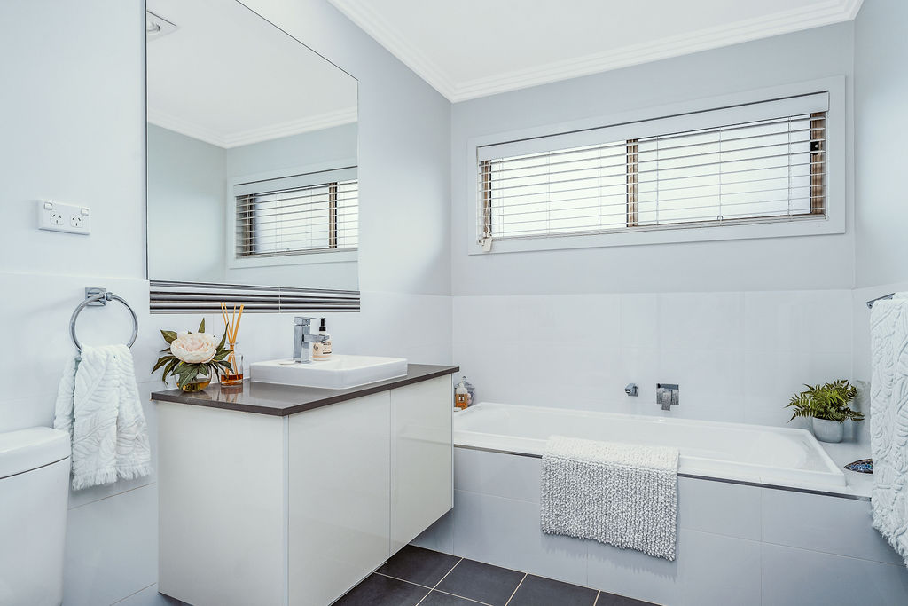 – Bright & airy main bathroom equipped with a bathtub