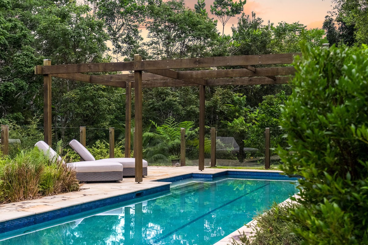 You will love coming home to this high set quality built timber home, situated tucked away on its very own 7+ acre sanctuary in nature at the top of a ridge just minutes to Uki village. There is a feeling of peace and serenity in this home with its wrap around deck affording a stunning vantage point to view magical Wollumbin (Mount Warning) in all its glory and its ever changing moods. Upon awakening after a restful sleep you will hear the sounds of birdsong as the morning mists rise to give way to a new day and a sun drenched vista in every direction. If a morning swim is your thing then the 18mtr lap pool is beckoning…what a way to start your day! Your rainforest gardens are an allure to the abundance of wildlife here including the resident black wallaby (“Wally”) and a plethora of birds, including kookaburras, black and white cockatiels and rosellas. Take an afternoon walk on the rainforest path near the creek and enjoy some of your orchard harvest as you head back up the path to perhaps have an afternoon or early evening swim under the stars. This is a call to nature lovers who will feel a million miles away from the madding crowd yet still be handy to local amenity including the bustling Northern Rivers arts and food scene of Murwillumbah and the Gold Coast international airport.